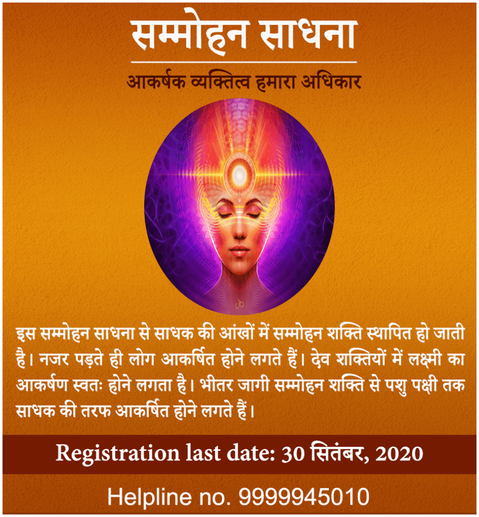 [इस सम्मोहन साधना से साधक की आंखों में सम्मोहन शक्ति स्थापित हो जाती है। नजर पड़ते ही लोग आकर्षित होने लगते हैं। देव शक्तियों में लक्ष्मी का आकर्षण स्वतः होने लगता है। भीतर जागी सम्मोहन शक्ति से पशु पक्षी तक साधक की तरफ आकर्षित होने लगते हैं।]